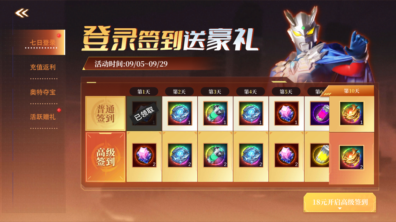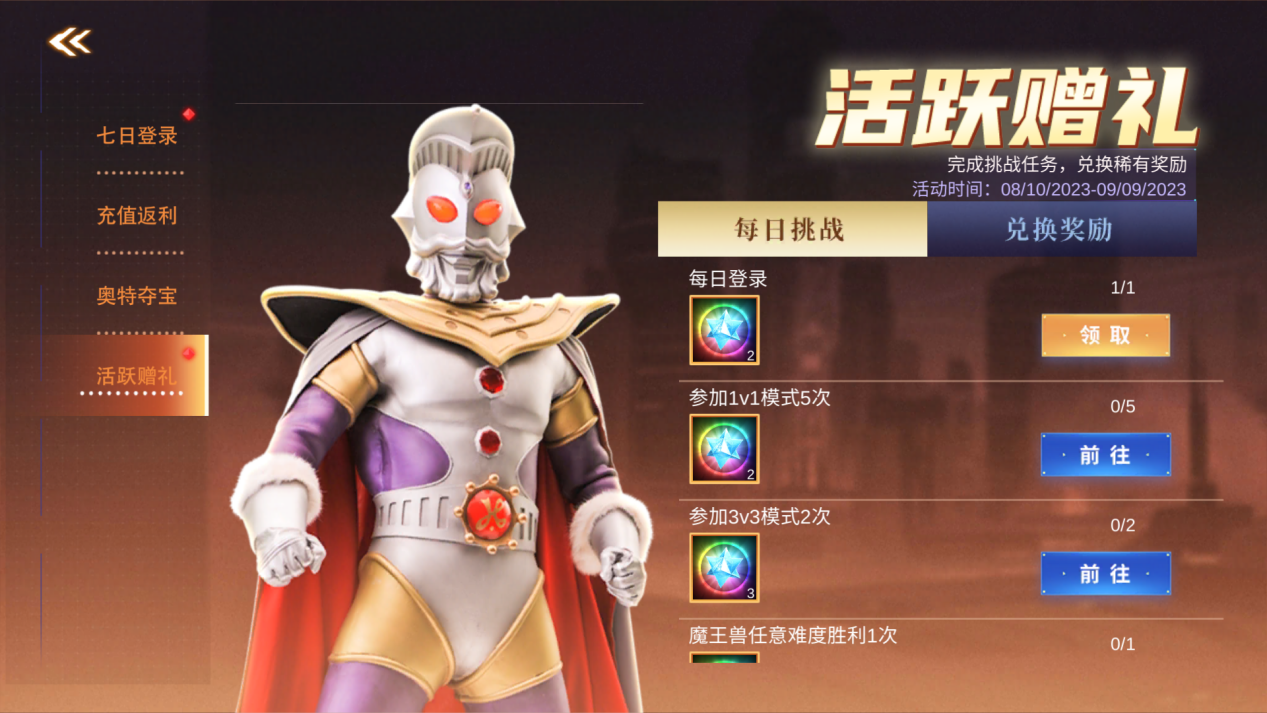连续签到、奥特夺宝、活跃赠礼,多重好礼等你来拿,黑暗特利迦免费得!