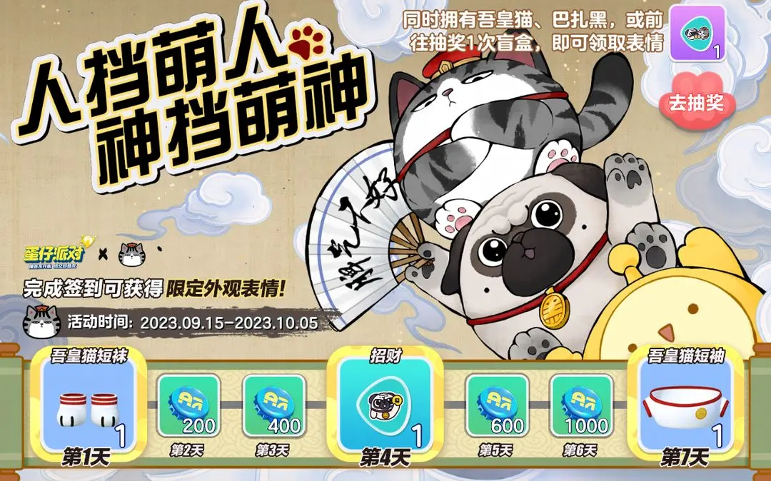活动期间完成签到即领吾皇猫套装