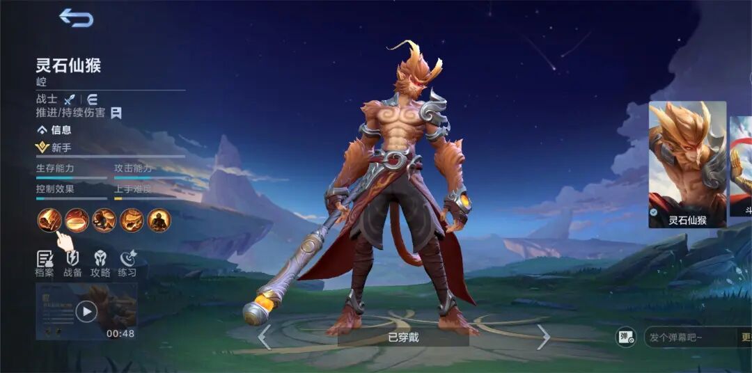 崆是仙山灵猴,意志坚韧不屈,手中的如意金箍棒更是坚若磐石,不说能开天辟地,劈山斩石肯定是没问题的。每当他金箍棒舞动,犹如一条神龙盘旋,棍法迅猛无比,精准的敲在敌方英雄的小脑袋上。