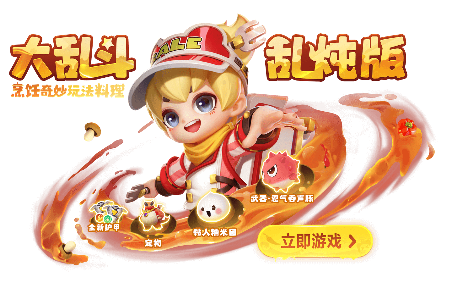 每局游戏开始时,大乱斗地图中将随机刷新团子的美食摊和[食材币]宝箱,少年们通过开启[食材币]宝箱、普通宝箱又或是金宝箱都可以获取[食材币]!
