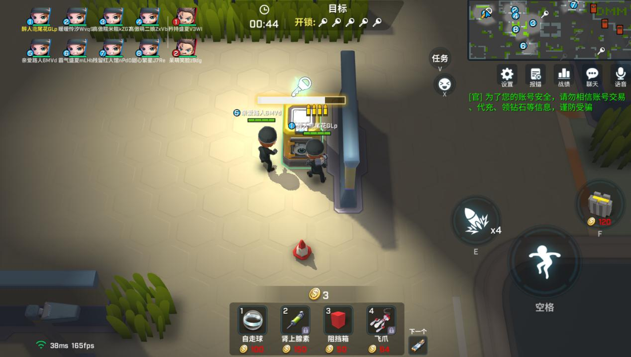 逃生阵营视角:未完全开启的锁会在25%/50%/75%的进度时进行分段提示,并且当有玩家对75%及以上的锁进行交互时,还会有闪烁提示。