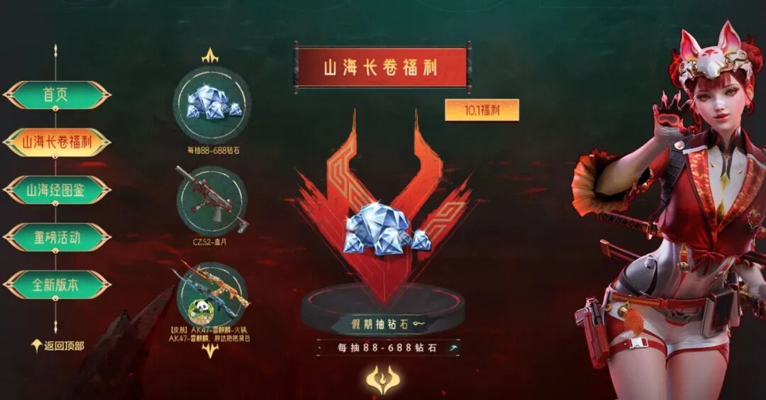 每到假期就会送上大量的钻石奖励,10.1也将开启一波钻石福利,活动页面的爆料写的是每抽88-688钻石,估计是一波不小的福利。