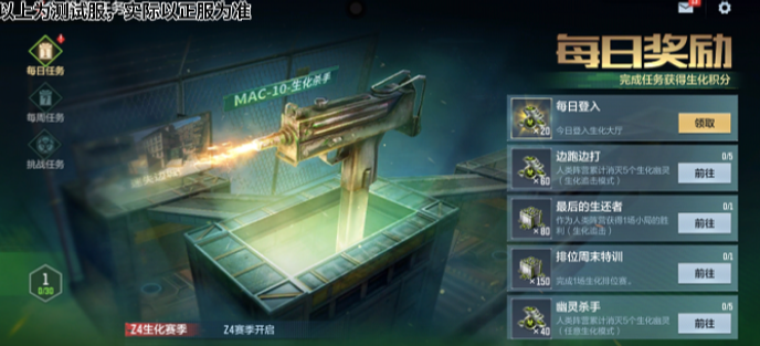 新版本即将迎来生化排位Z4赛季,奖励也会随之更新,喜欢玩生化的玩家,可以直接点击生化跳转到专属界面,完成指定任务即可升级解锁全新奖励,相信给位在生化Z4赛季都能取得不错的战绩。