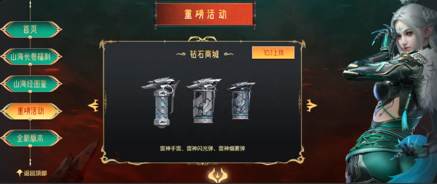 游戏里的钻石商城每周都会更新道具奖励,新版本更新后钻石商城即将上架雷神投掷套装,其中包括雷神手雷、雷神闪光弹和雷神烟雾弹,届时想要购买雷神投掷武器套装的玩家,点击游戏钻石商城购买即可,如果有商城抵用券也可以使用。