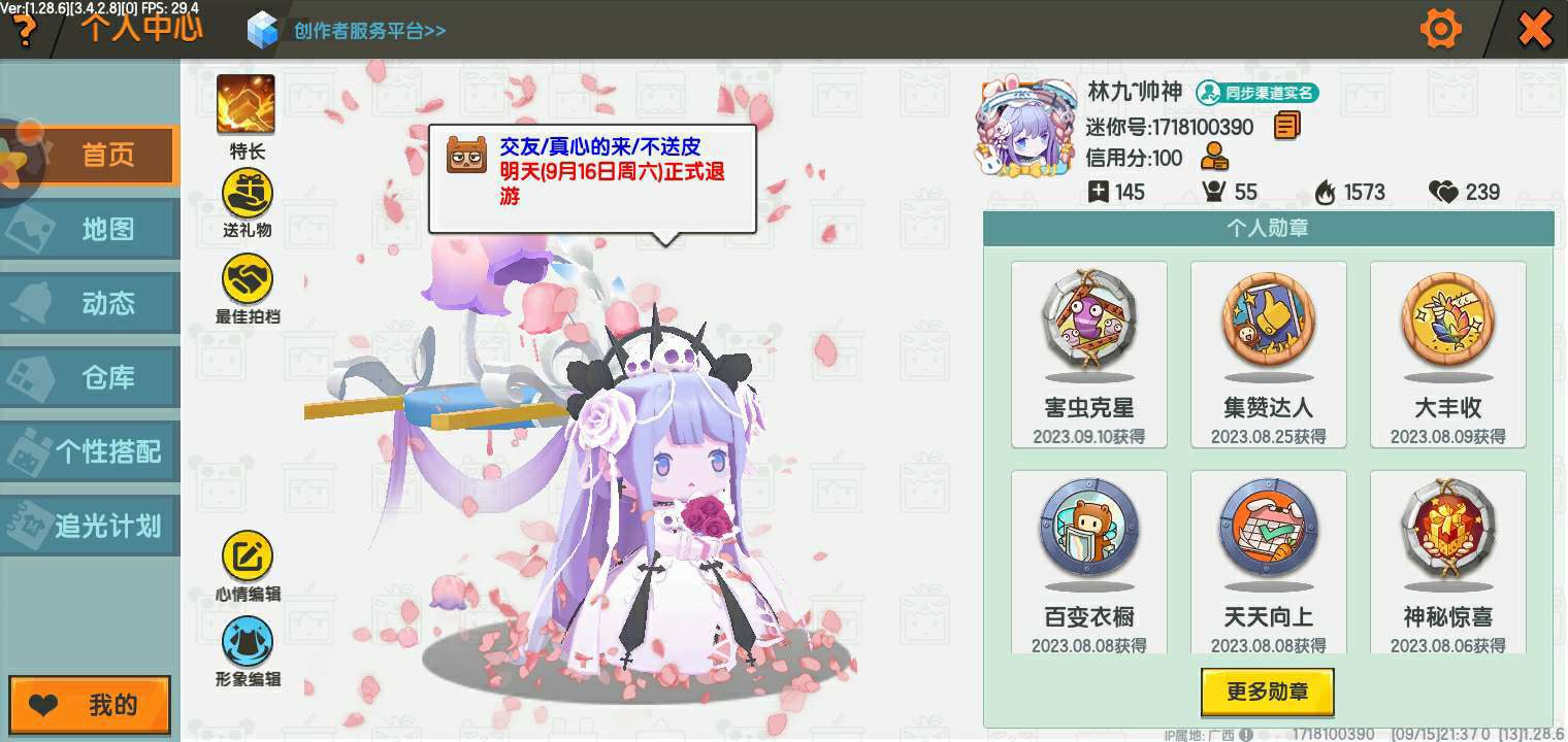 退游9月 21 回 因为/来为/为了不怎么有用的东西 所以退游啦 有什么事到时候上线可以说