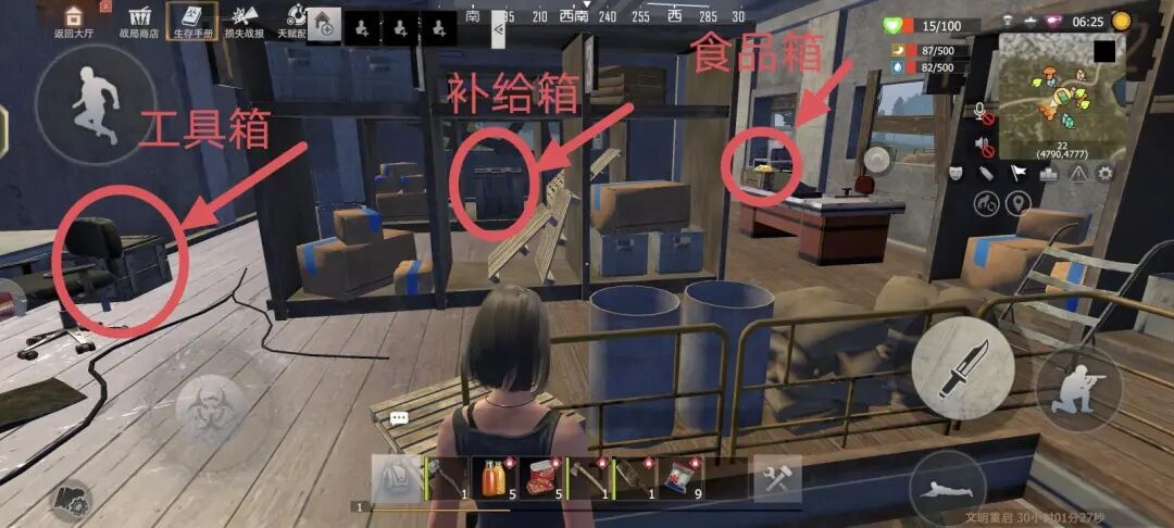 然后,我们再去到另外一个房间,可以看到地下摆放的补给箱
