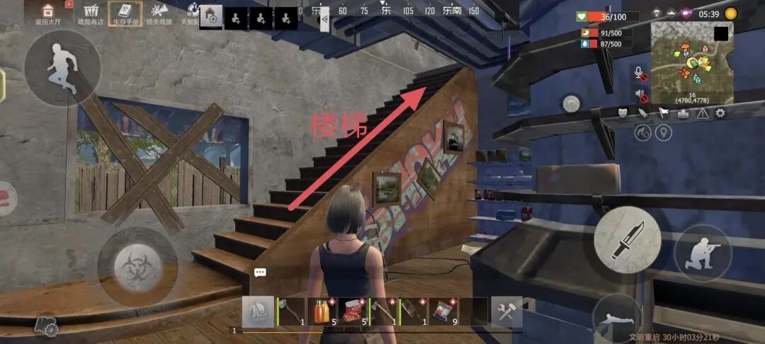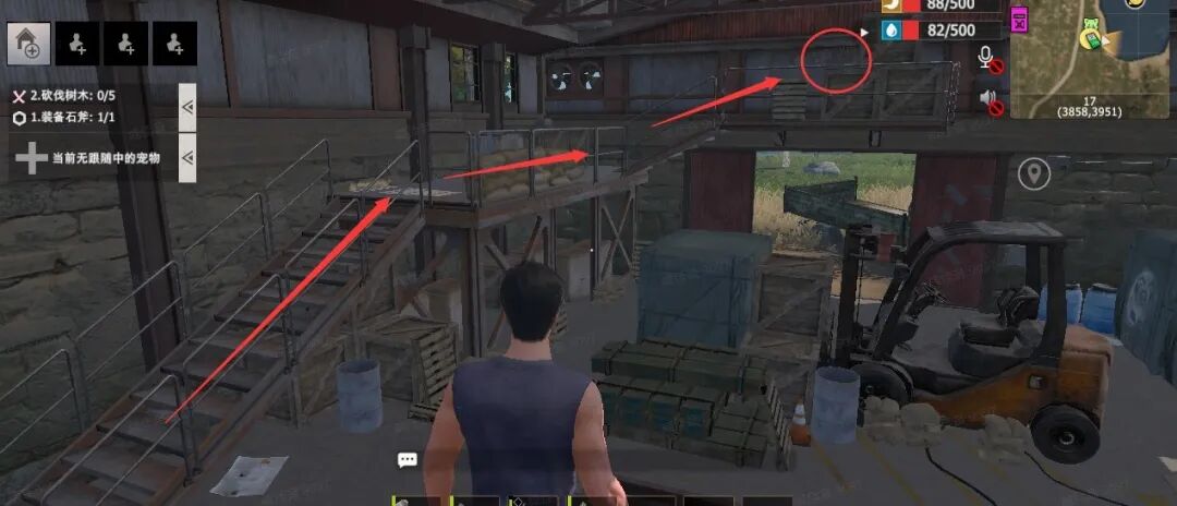 仓库两侧楼梯都可以上到2楼,有几率获取到补给箱~
