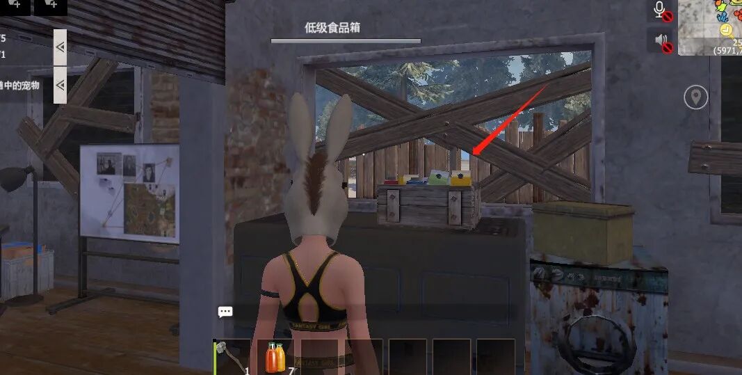 我们先进入1号房间,可以看到正前方有一个食品箱