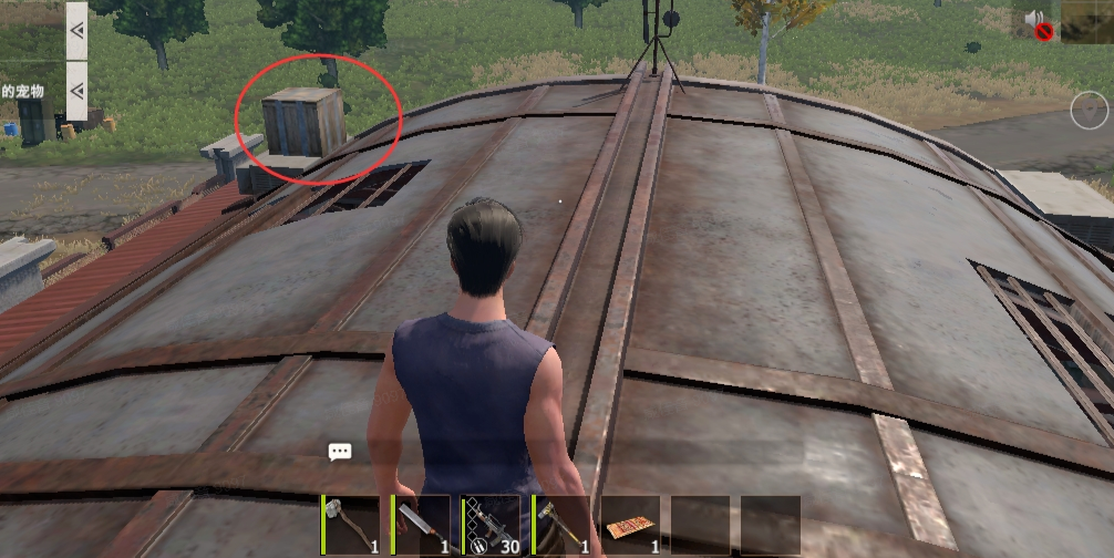 加油站的屋顶一定不要错过,我们可以从加油站外侧堆放的箱子通往屋顶,如下图所示