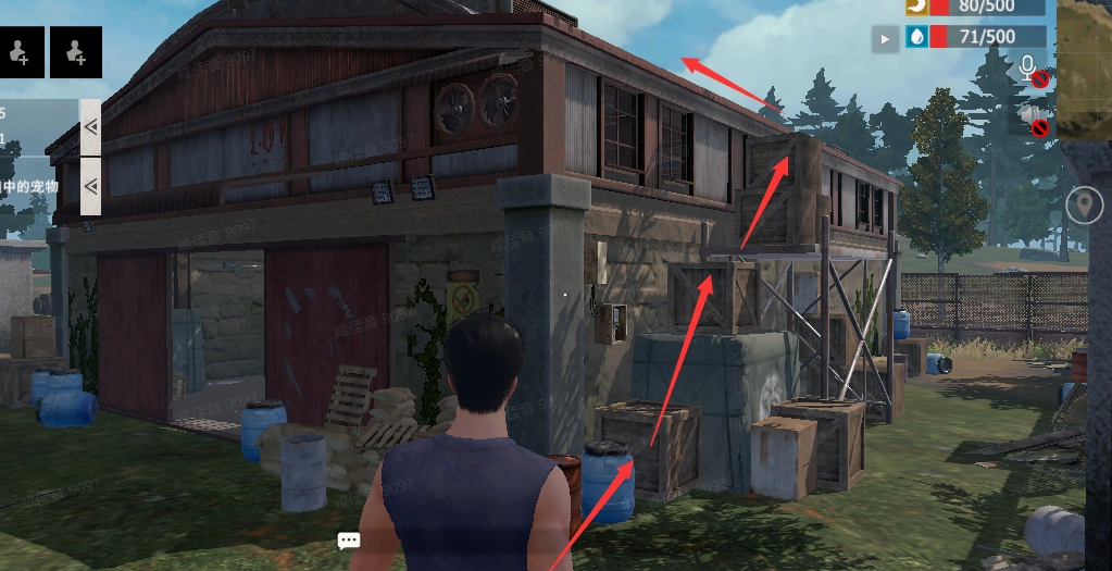 除了2楼能够获取物资补给箱之外,仓库的屋顶也有呦!我们来到仓库外,通过堆放的箱子到达屋顶,就可以看到啦~