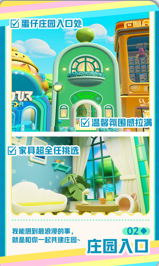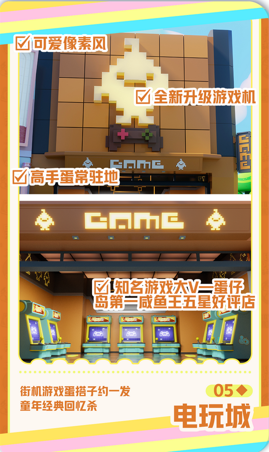 温馨庄园入口、酷炫电玩城、潮流商店……