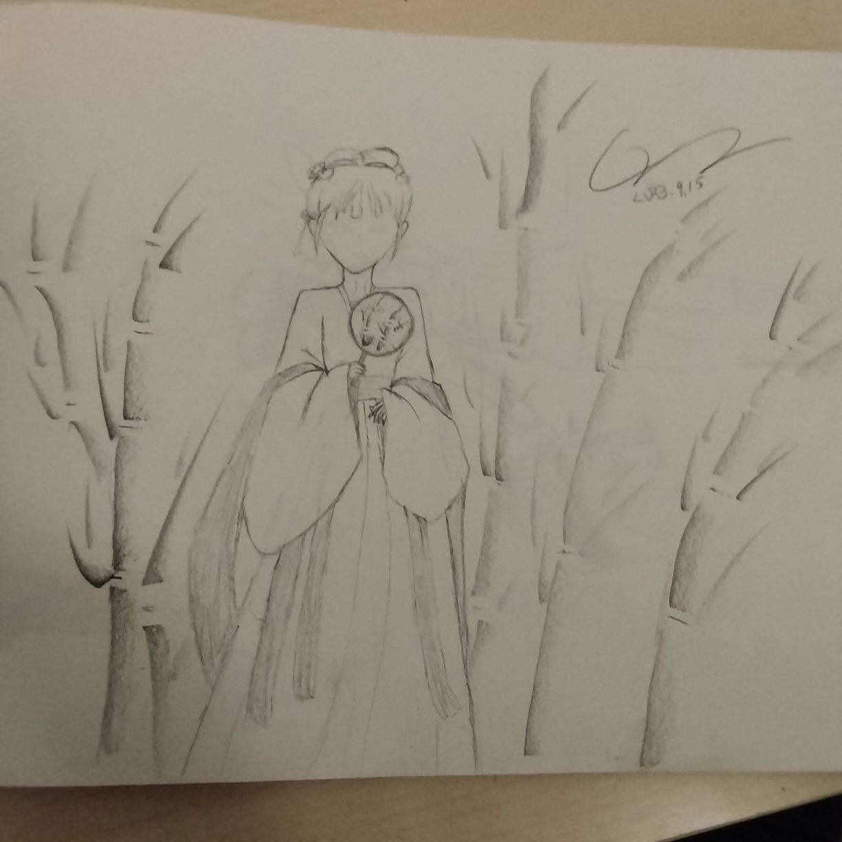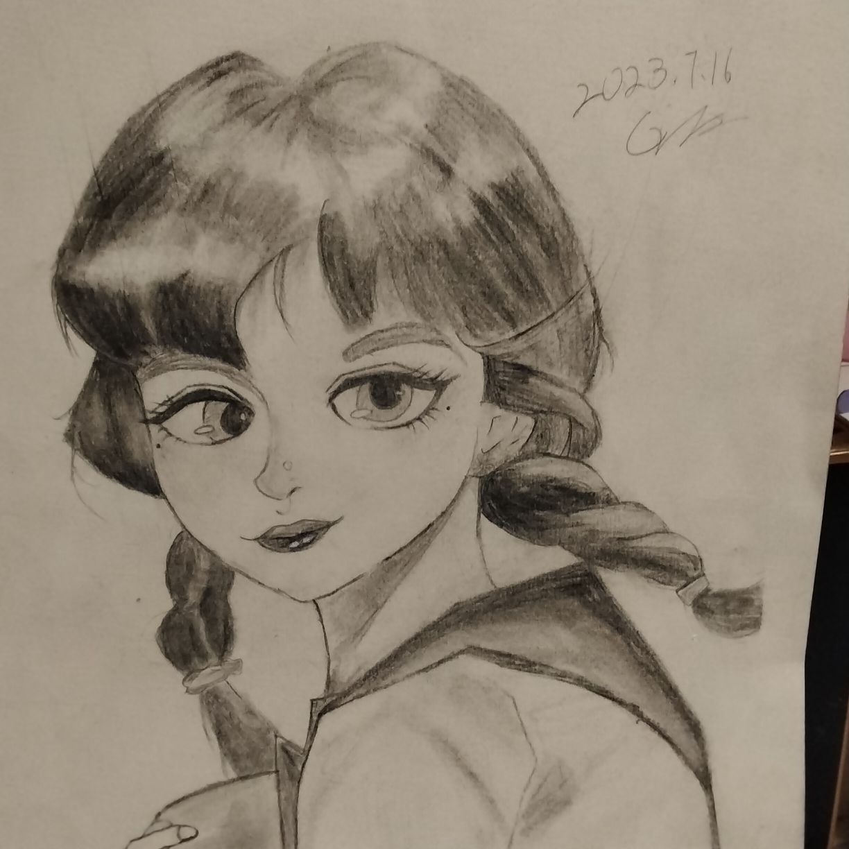简单画画,我个人喜欢穿吊带的,可同学都说拿扇子的好看.