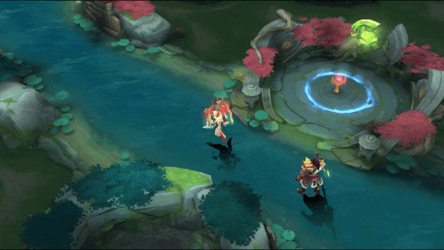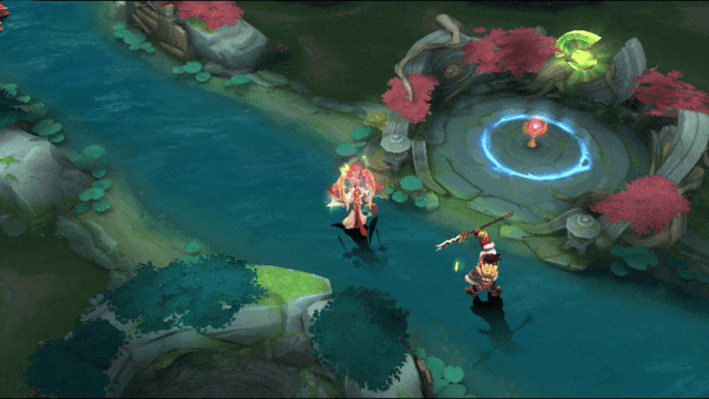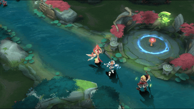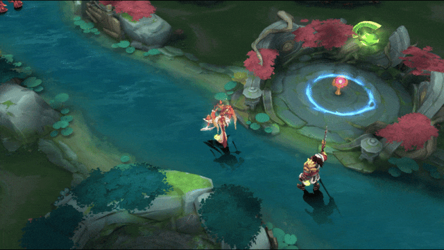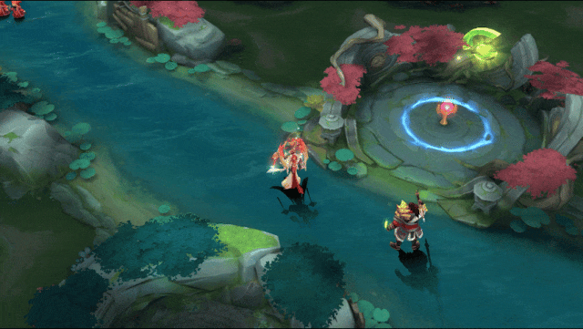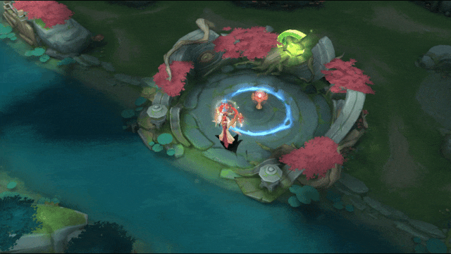 洛神掷出手中圆环再收回,触及的友方英雄获得一个护盾。