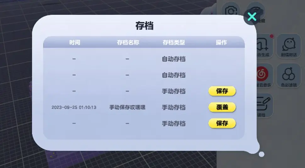 蛋仔们在【更多】中可以找到存档读档功能