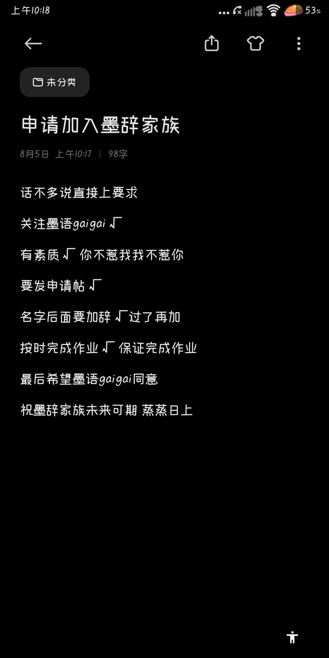申请加入墨辞家族