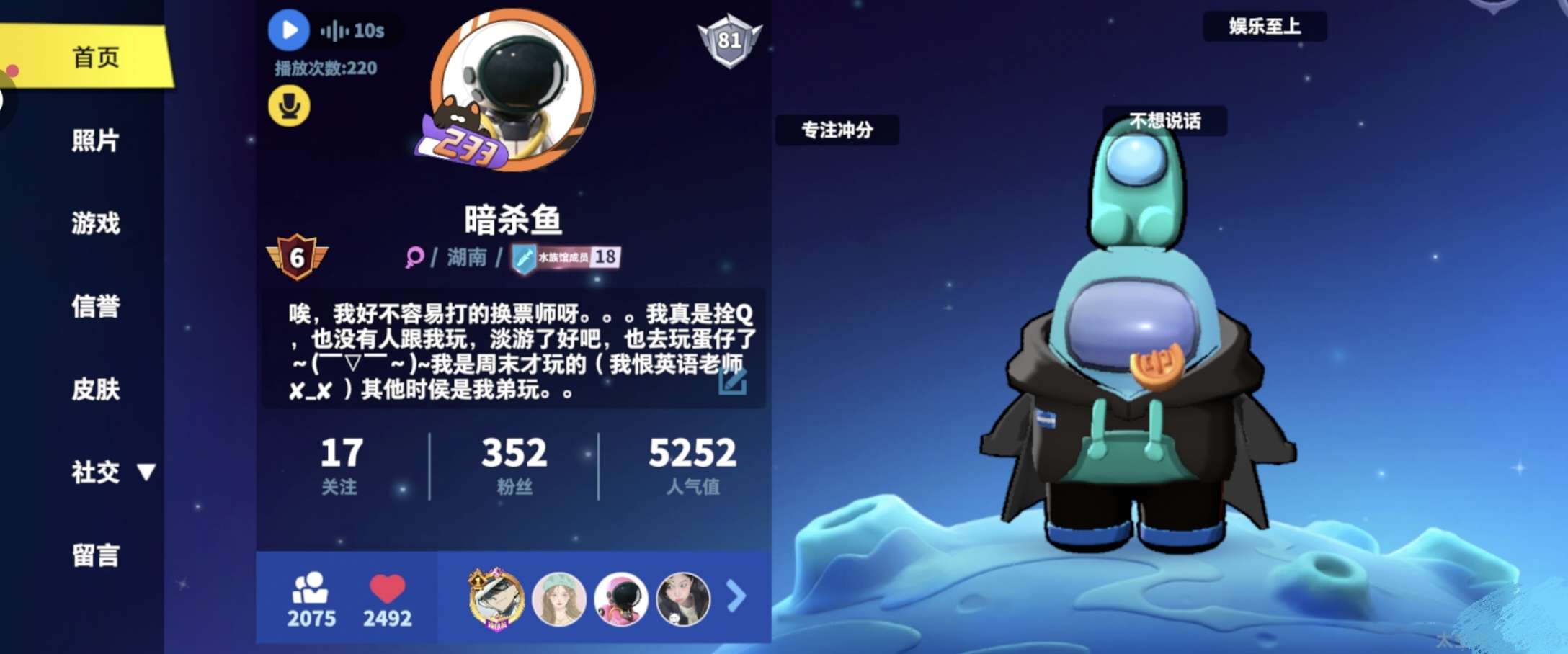 真的一个人玩的无聊死了( ✘_✘ ),有没有人愿意来跟我玩?(只要一个真心的)周末才能上线。
