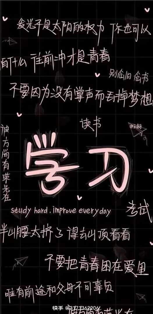 学习学习,是我们在为我们的未来。能够踏上属于我们的路,学习,是发光的太阳。唯有前途和父母不辜负。