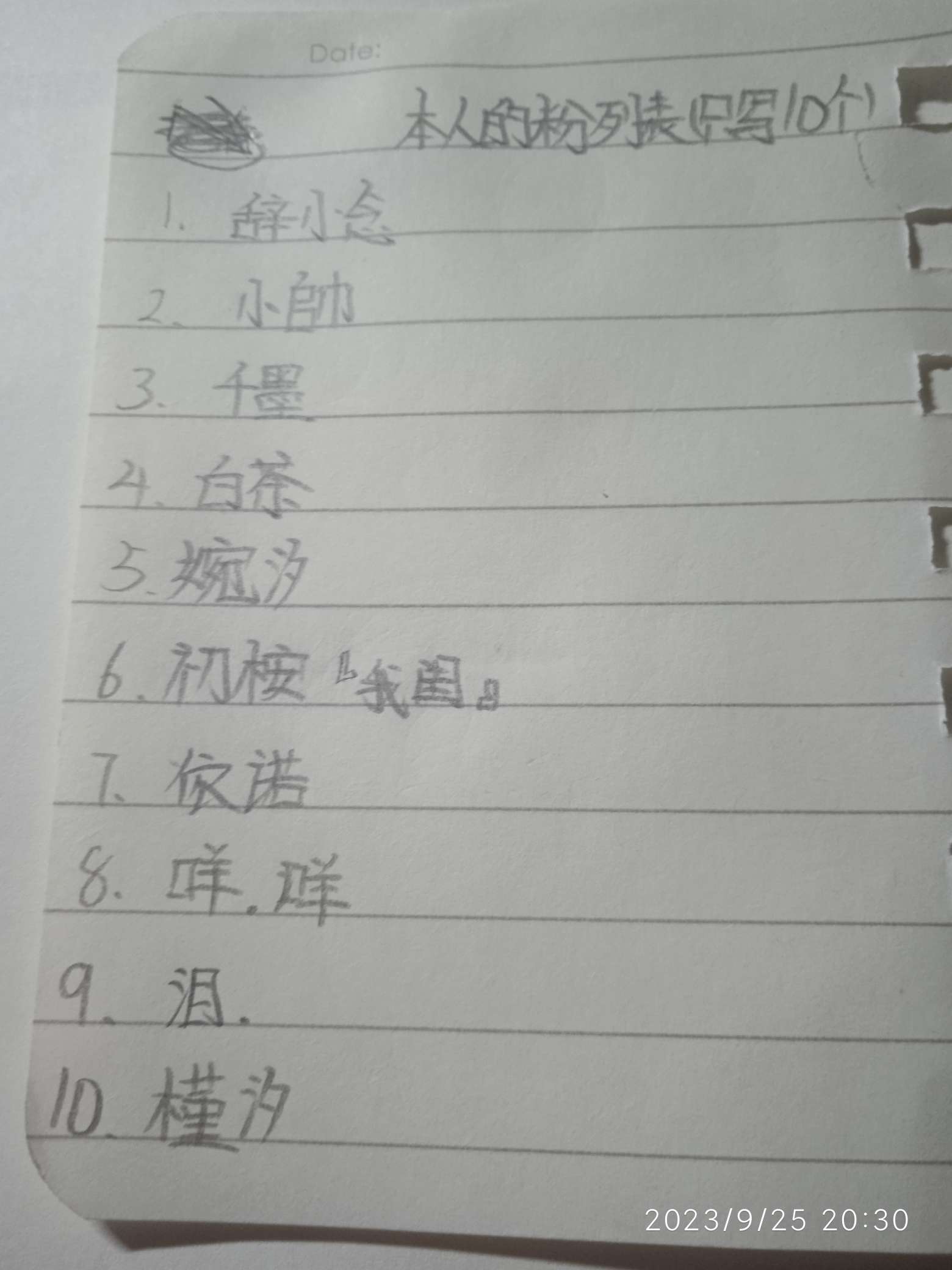 第六个提到第一个那里,第一个提到第六个那里,这是我的粉丝列表,每天都会写的哦,我也很高兴你们能出现在我的粉丝列表里面。也可以录入到我的纸上。