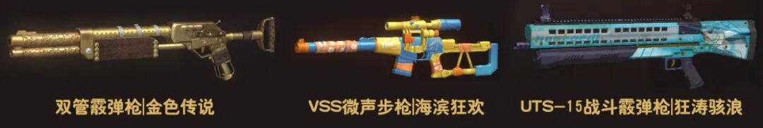 1、9月27日—10月4日,活跃可兑换双管霰弹枪|金色传说、VSS微声步枪|海滨狂欢、UTS-15战斗霰弹枪|狂涛骇浪等