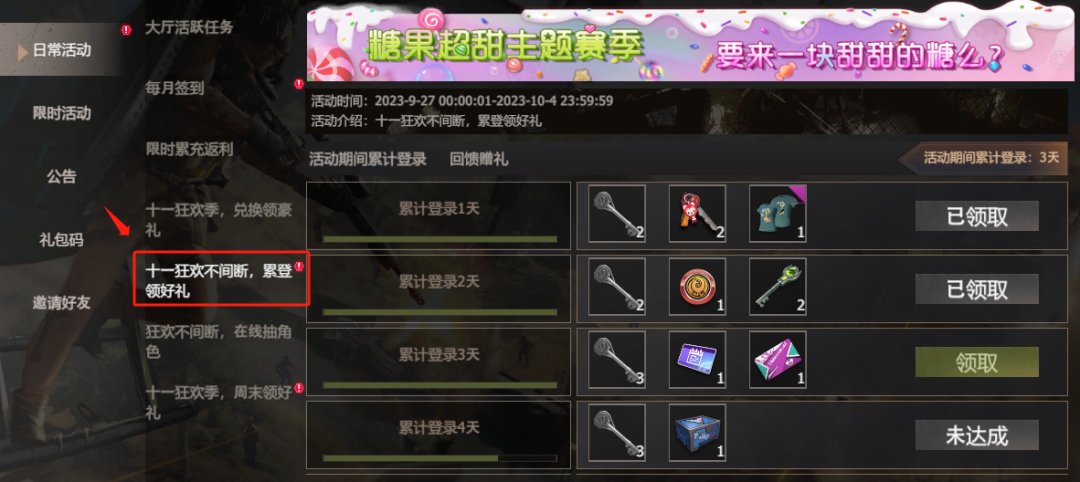 累登3天,可获得万能卡(可在宾果连连看,自由选择一个格子进行翻开);