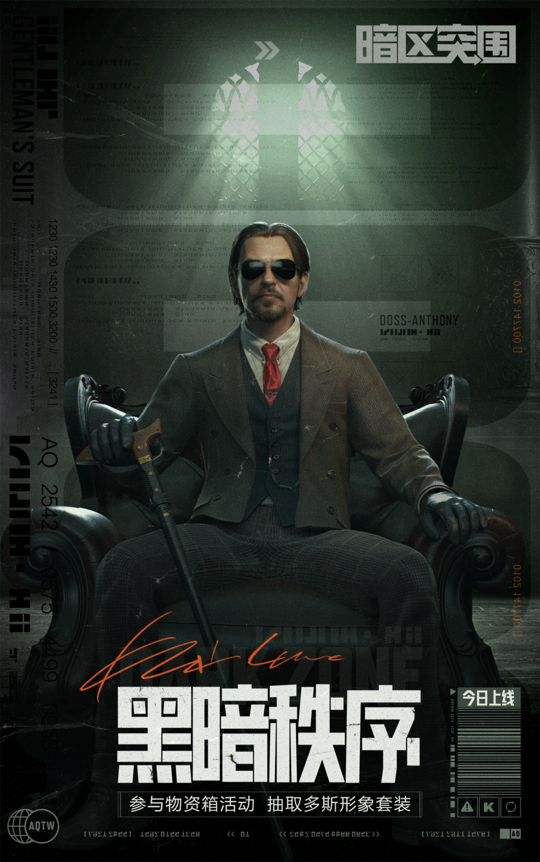 备受关注的《暗区突围》军需抽奖活动「黑暗秩序」已于今日正式上线。在军需抽奖的奖池内有几率获取完整的“多斯西服”套装,还有秩序·F2000枪械涂装、秩序·装备涂装组合、绅士·头部装扮组合、秩序·FA便携等丰厚奖励,供先锋们前来获取。此外,先锋还有机会解锁多斯的语音!