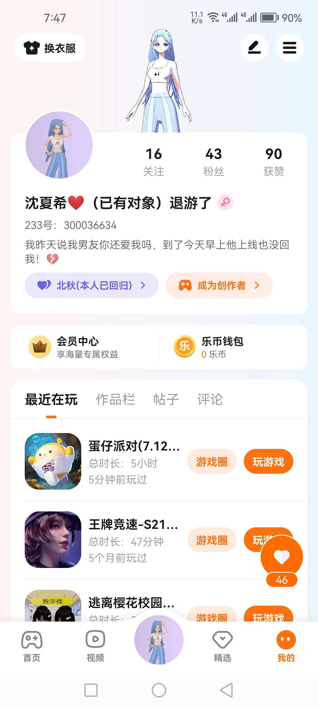 我要退游了😭,是因为我和男朋友分手了才退的!再见朋友们我一直我会回来看你们的💔明年在回
