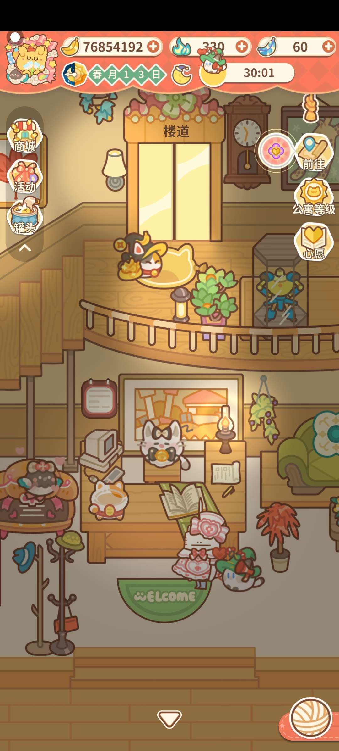 之后就是来源于大厅摆放的设施所产生的金香蕉了,产生金香蕉的一共有两种设施,一个是兴趣,一个是装饰(为什么分开讲?主要是因为两种设施铲出金香蕉的方式不一样)