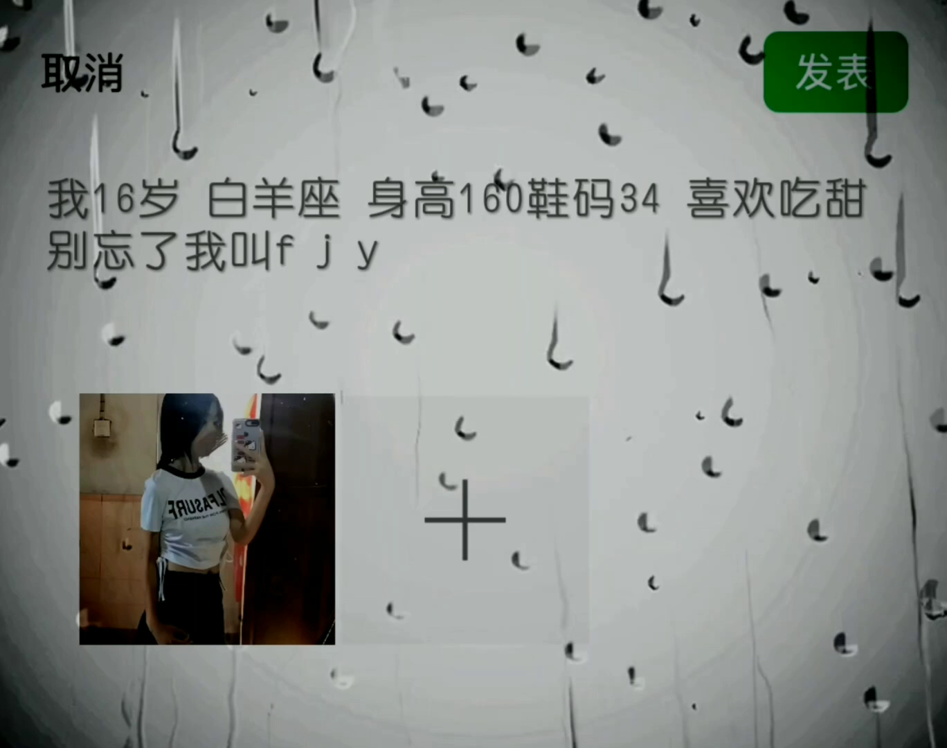 16岁 白羊座 身高160 鞋码34 爱吃甜 我叫 fjy