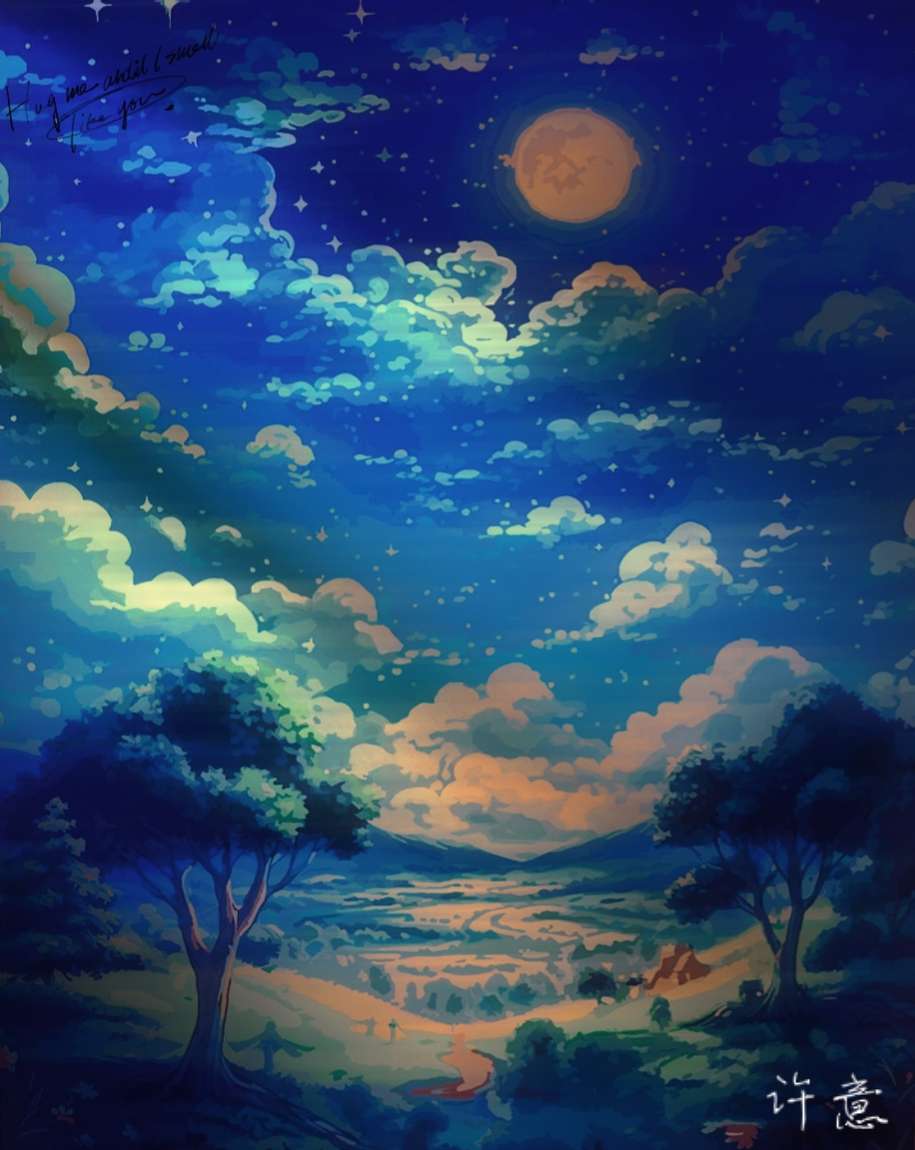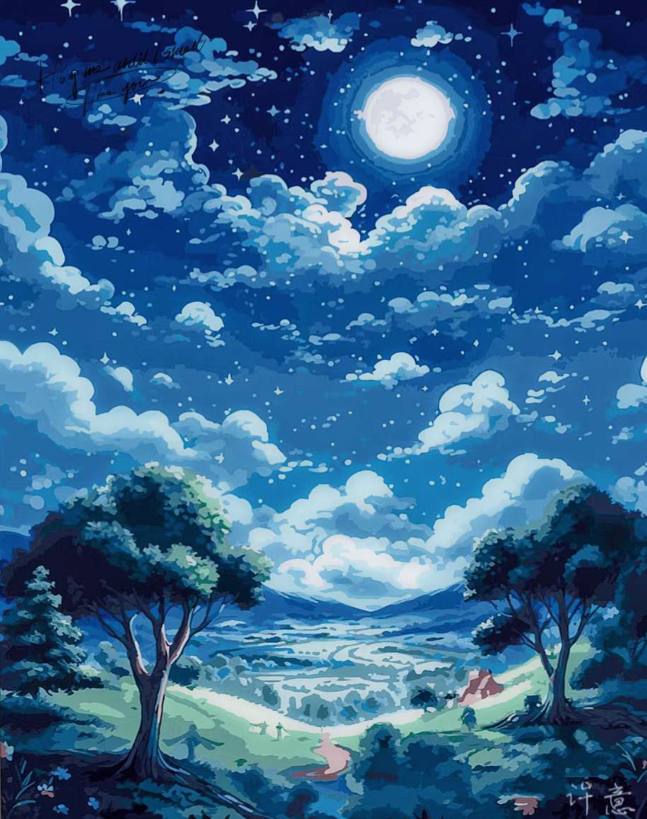 【秋月圆兔】绘画组《夜云.月》
