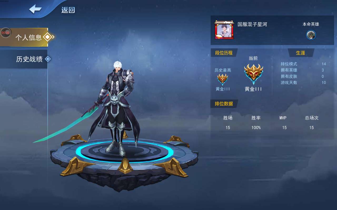 虽然段位有点低但是胜率百分百每场MVP