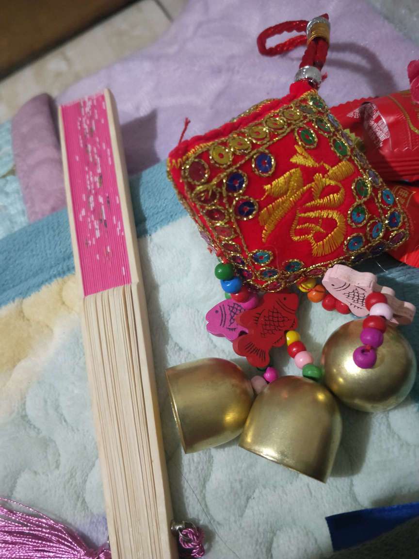 嘿嘿嘿我爸爸给我买的平安福和扇子还有好多零食🌚✌