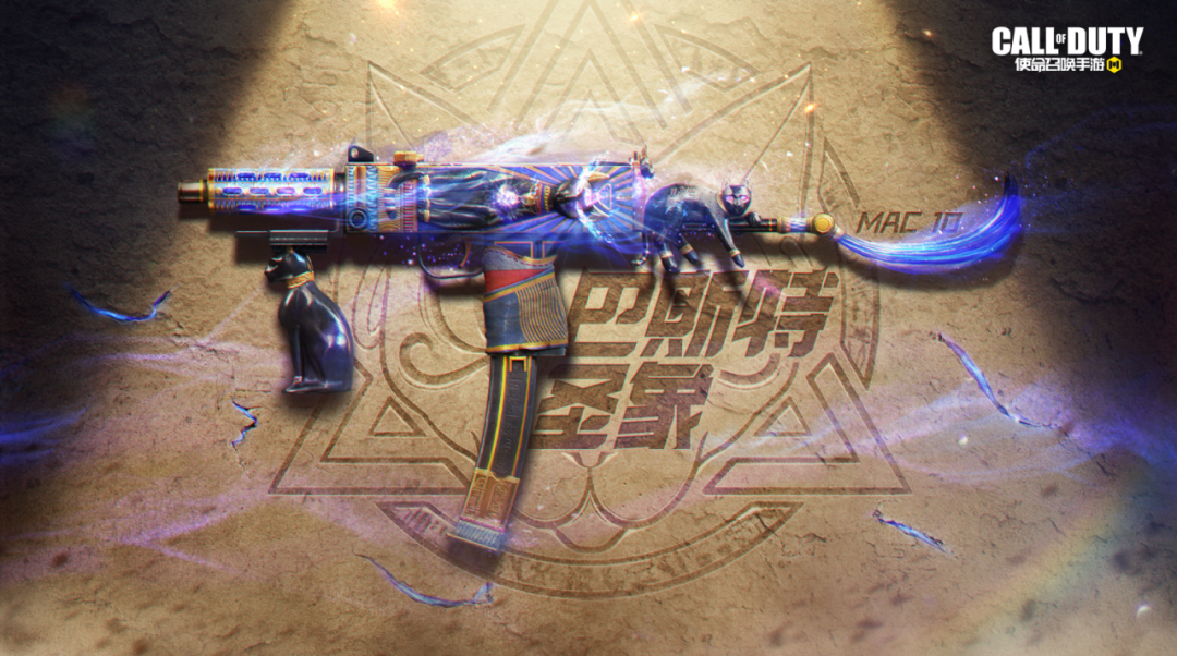 至于他手中的这把武器,也同样成为了交战双方津津乐道的话题。神话中,巴斯特是猫首人身的女神,曾被视为法老的守护者。每当Mac 10-巴斯特圣象出场之时,猫神巴斯特的图腾都会出现,紫色的光芒照亮黑暗!