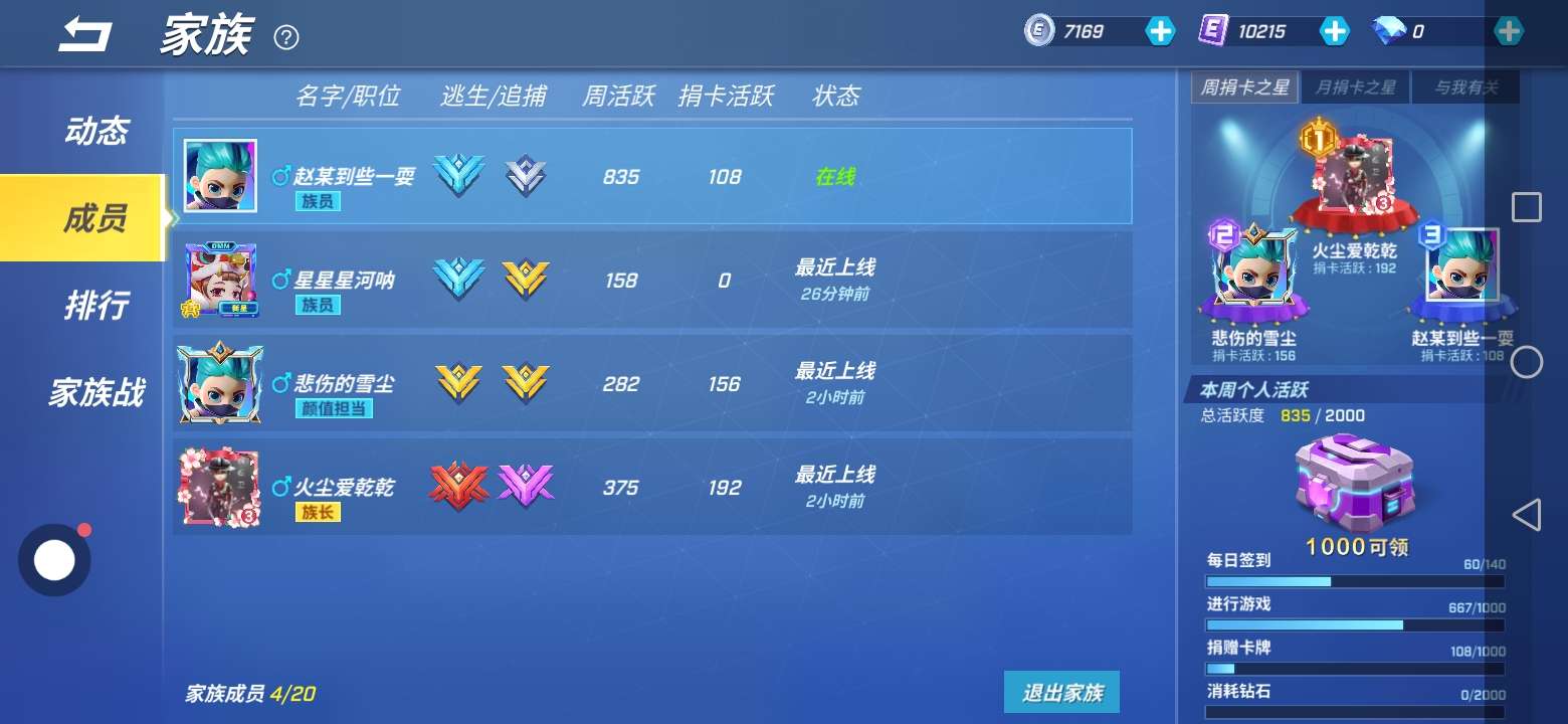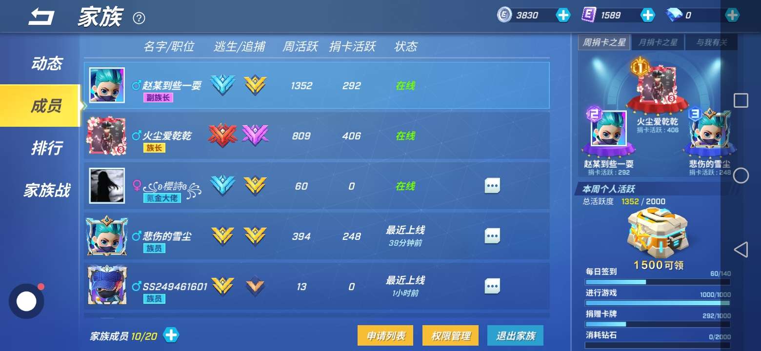 家族招人,不论段位,只要经常玩的人
