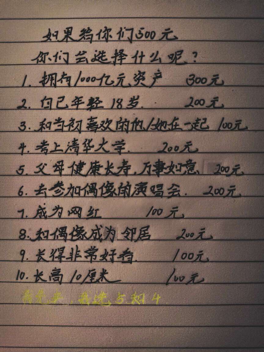 如果给你们500元,你们会选择什么呢?👇🏼