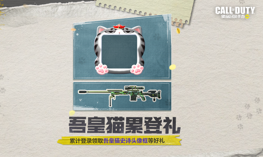 吾皇猫联动还未结束,精彩继续哦~10月21日(本周六),吾皇猫登录礼活动上线,参与活动,累计登录,即可获得联动奖励头像框-吾皇猫和稀有级武器:DLQ33-低沉怒吼等丰富奖励,这次要把握机会哦~