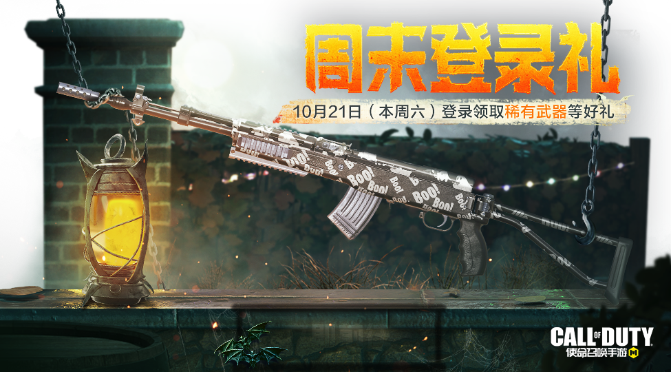 10月18日(今天),周末登录礼惊喜上线,战士们仅需登录游戏,就能获得稀有级武器:SKS-Boo许动和黑暗召唤宝箱!