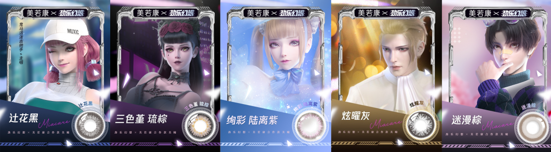 说到瞳色调整,此次《劲乐幻想》与硅水凝胶美瞳天花板的美若康携手,就在游戏中加入了多款美瞳,各位音乐人只要在游戏中登陆赤岛,就可以使用“美若康”美瞳为自己的人物进行装扮,一键体验百变电眼!猫鼬乐队的几位成员们也抢先试戴了不同花色的美瞳,演绎闪耀舞台!