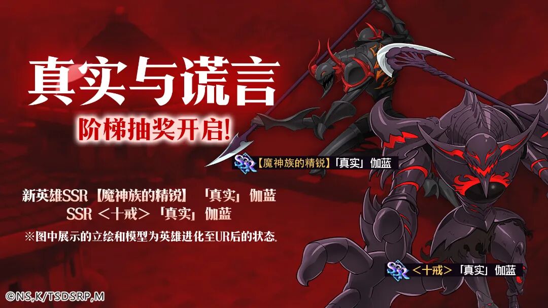 真实与谎言阶梯抽奖开启,新英雄SSR【魔神族的精锐】「真实」伽蓝,SSR<十戒>「真实」伽蓝登场!