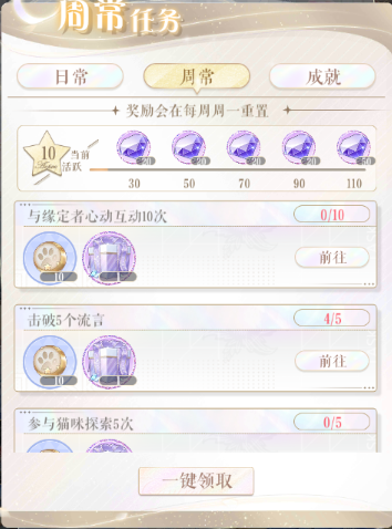 周常任务就是按一周时间进行重置的任务,每周一0点进行重置,小主一定要记得完成任务,避免浪费哦