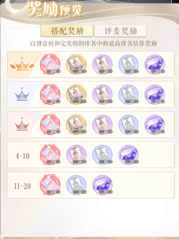 排名奖励可以获得心语卡,钻石及服装升阶材料,心语卡可以在人气小铺兑换超美时装哦。