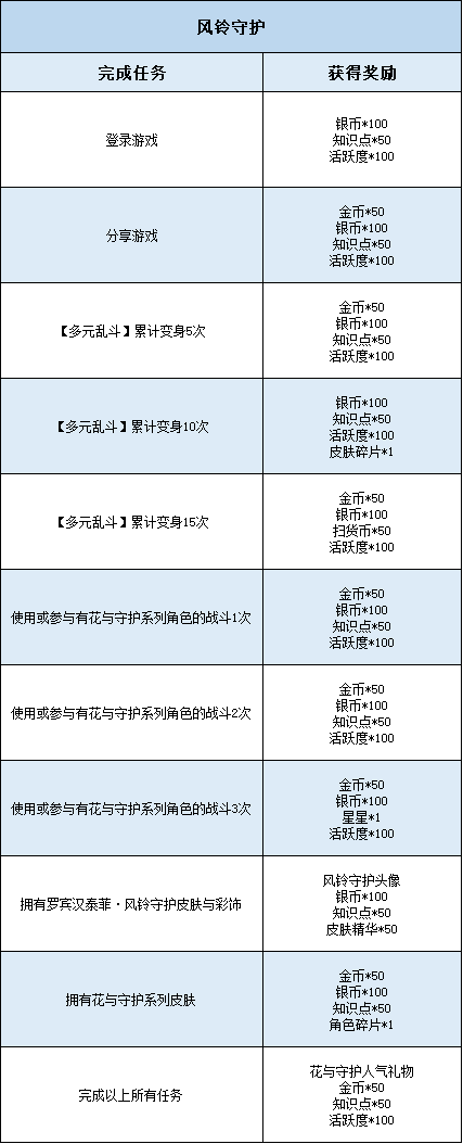 一起来见证罗宾汉泰菲·风铃守护和剑客莉莉·红铃兰剑士守护心爱之人吧,参与活动完成任务,还有丰富的奖励等你带回家哦~