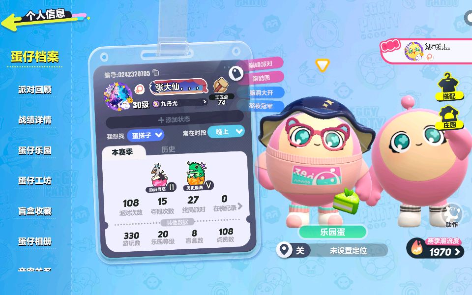 有谁要做我的蛋搭子?我的蛋仔名叫张大仙,,,后面有三个逗号,我现在是鸵鸟蛋,30级,谁愿意做我的蛋搭子?