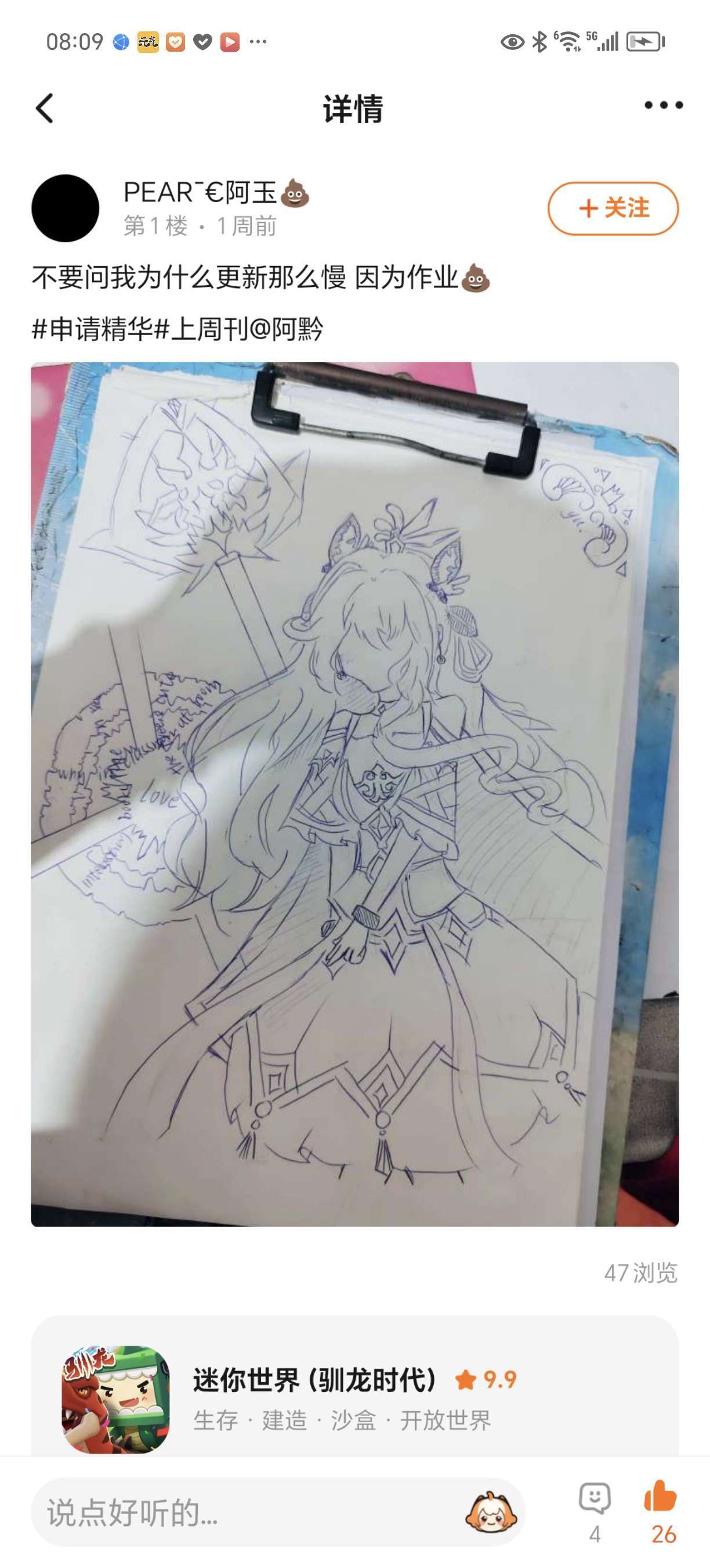 好好好,即使你没有热度,或者说你热度再差。但是,只要你高质,无论是哪方面,只要你有天赋,就发帖,展示自己优秀的作品,再私信阿柒,或者评论阿柒,更或者是在好友申请理由和阿柒,阿柒都会认真看待!当你的作品符合质量标准,阿柒就会带你上!周!刊!