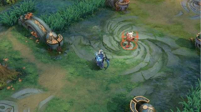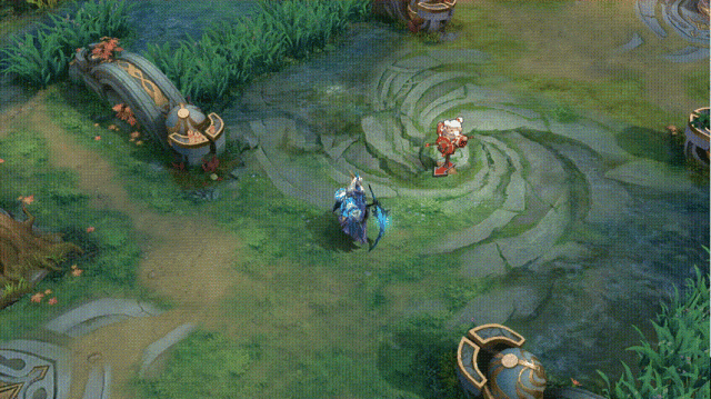 第二段:流觞曲水,王羲之将墨宝化为单向传送通道,敌我英雄可以通过入口穿过通道传送至终点