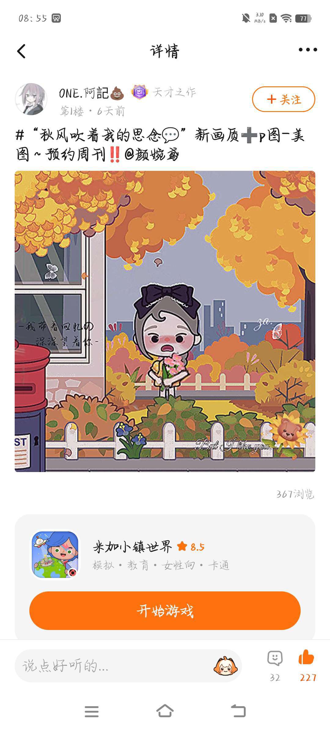 哈喽呀,各位,周六早上好呀!优秀丰富作品~一起来分享你的优秀作品吧~👻这次选取的人数比较充实哦~,每一位上榜玩家都是优秀玩家~周末的时间愉快吗💐,什么❗米加小镇突然更新了~确定不去看看吗🌷,这次的背景图更改了哦🥰一起来看一下优秀作品吧~