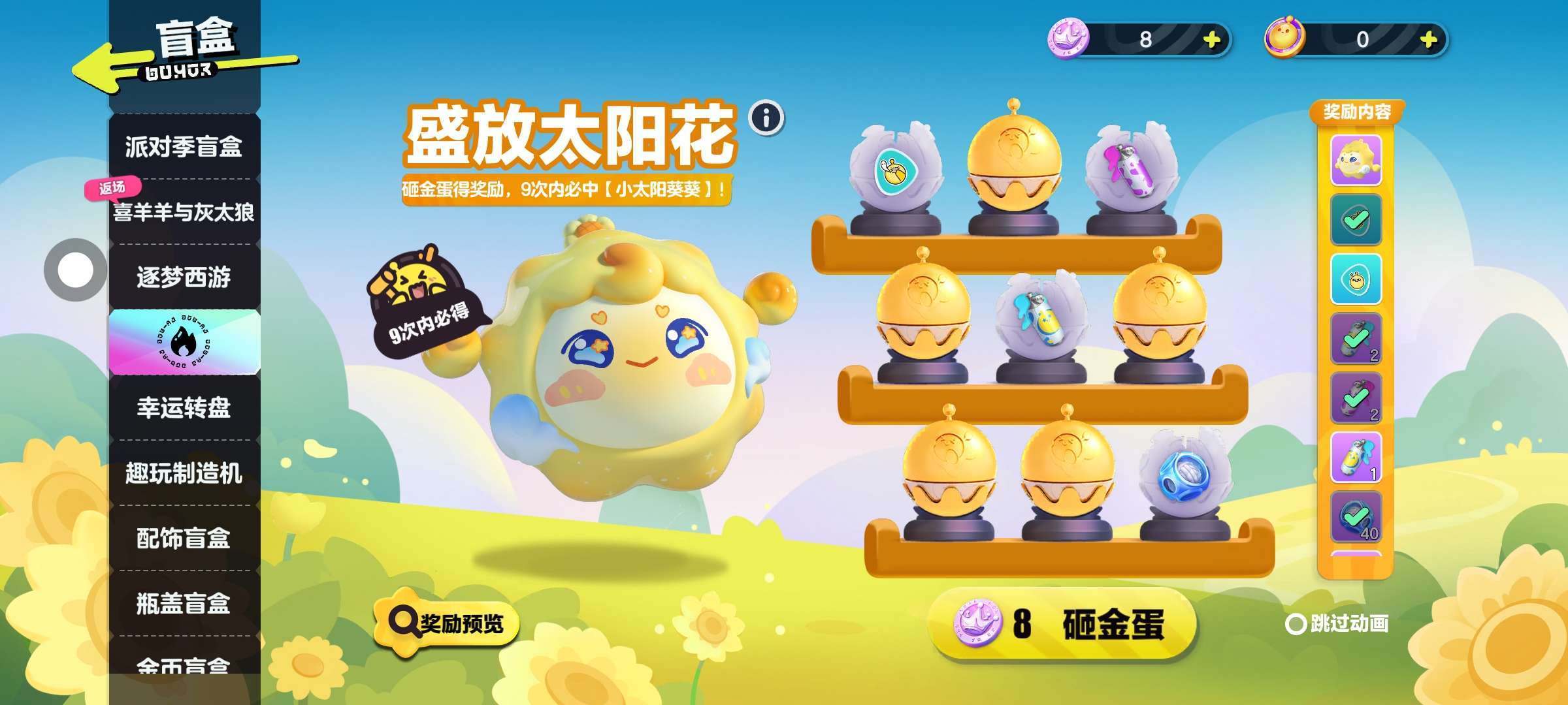 我想要几个太阳花皮肤。但至少八个彩虹币了。谁能帮我查一下是哪有太阳花。