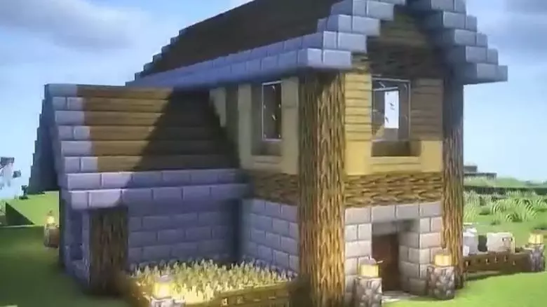 玩家展示自己在《我的世界》里建造的特色建筑,包含外观和内部布局,还展示了游戏里的武器装备,询问大家自己建造的效果如何。