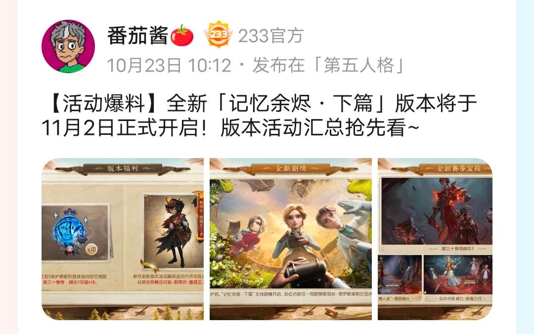 ▎【活动爆料】全新「记忆余烬·下篇」版本将于11月2日正式开启!版本活动汇总抢先看~