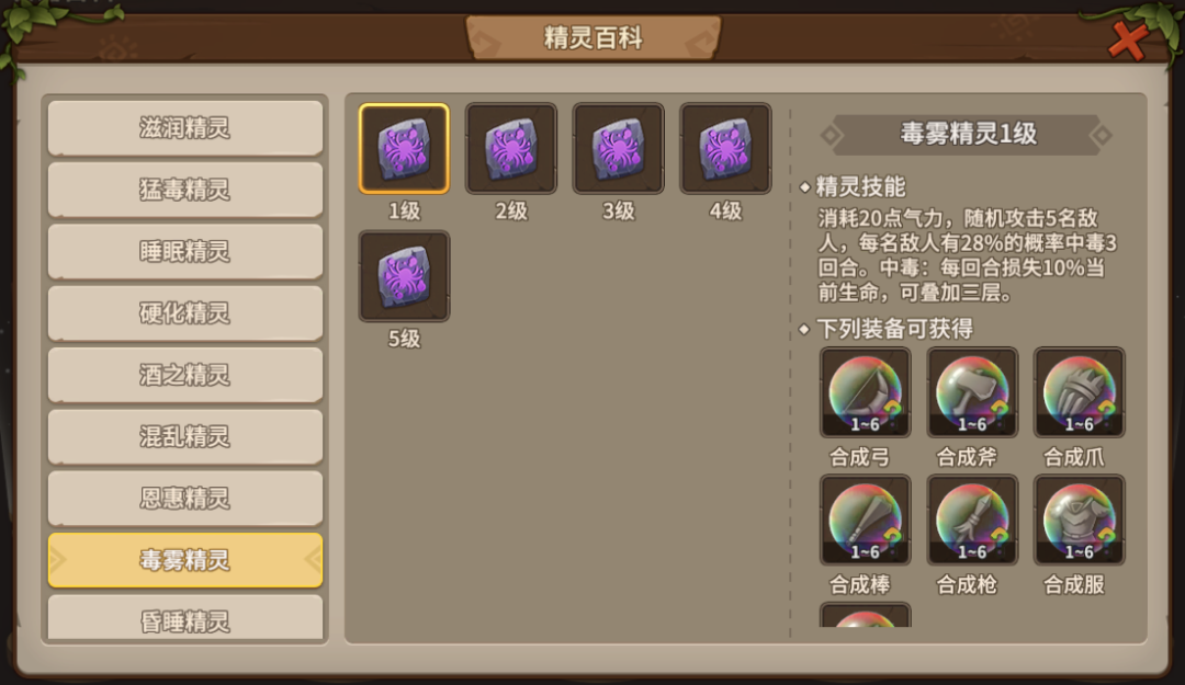 ◆ 武器/衣服:毒雾精灵,昏睡精灵,滋润精灵。