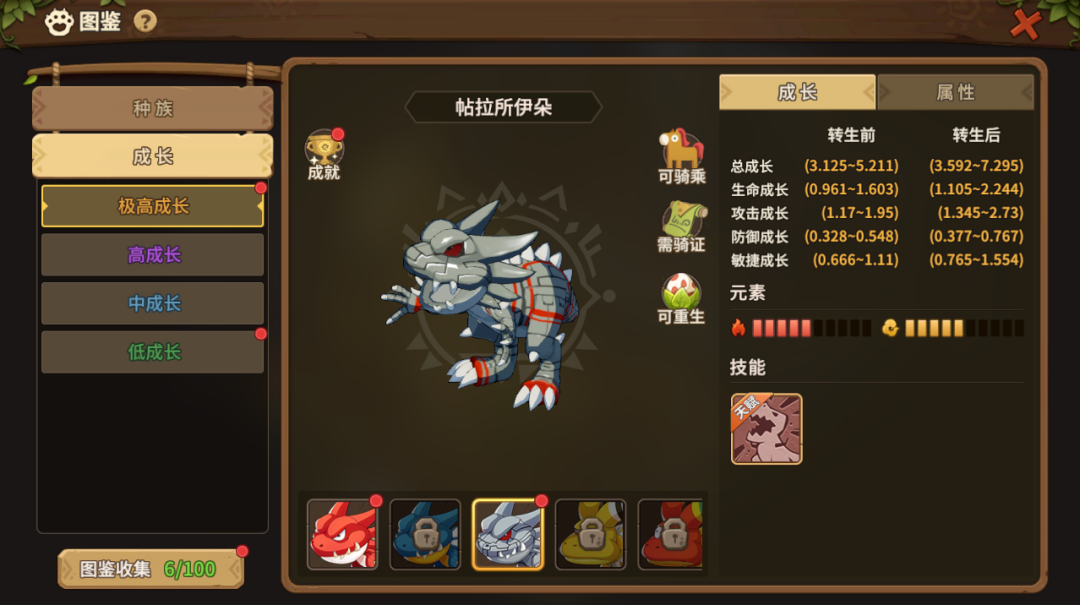 (1)雷龙,硬化皮肤天赋可以提高生存能力。